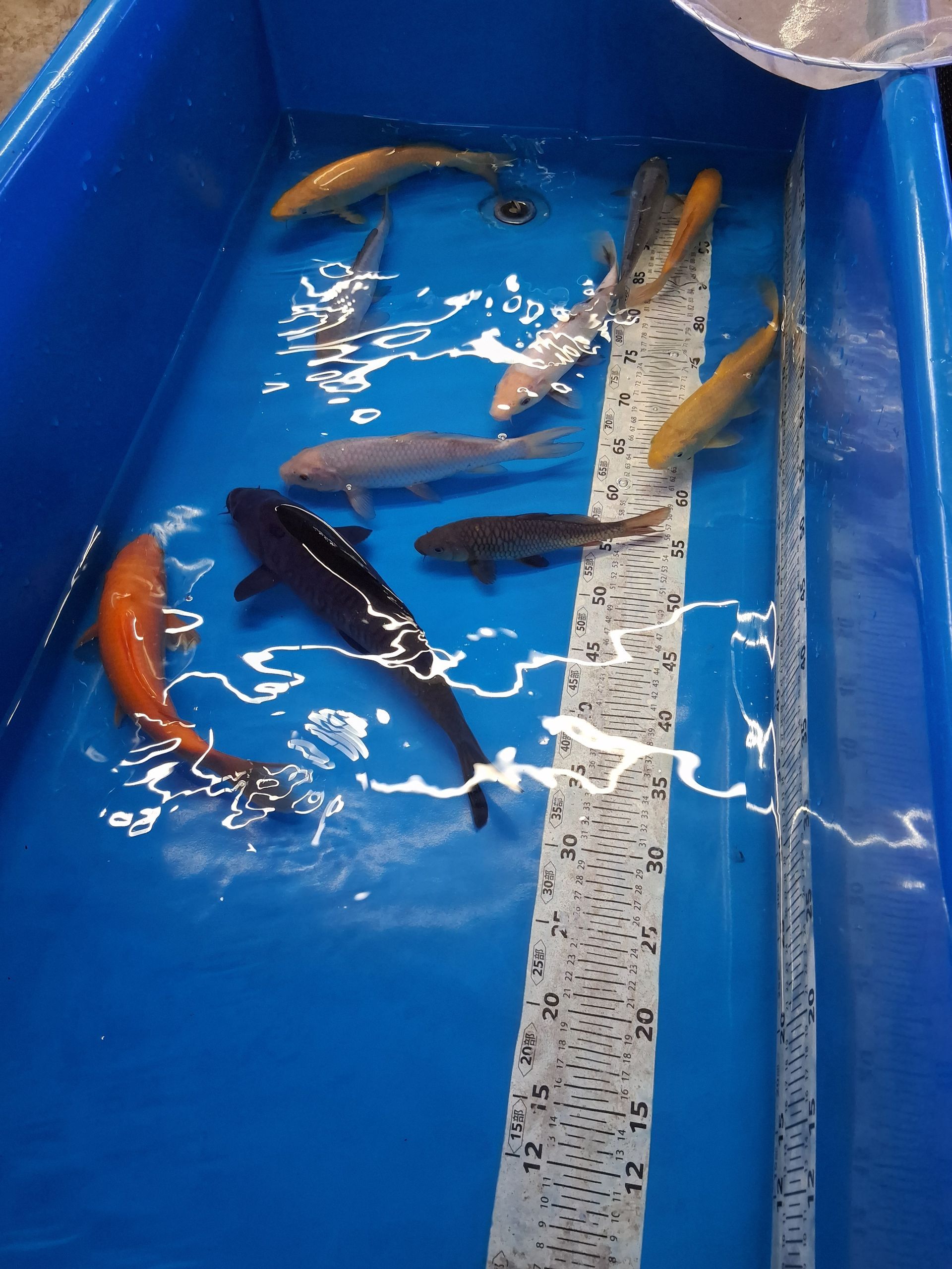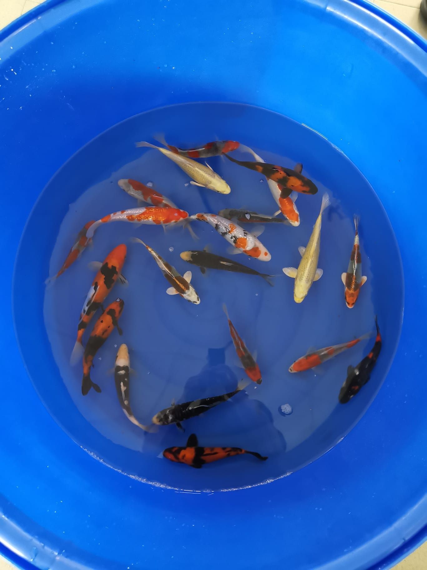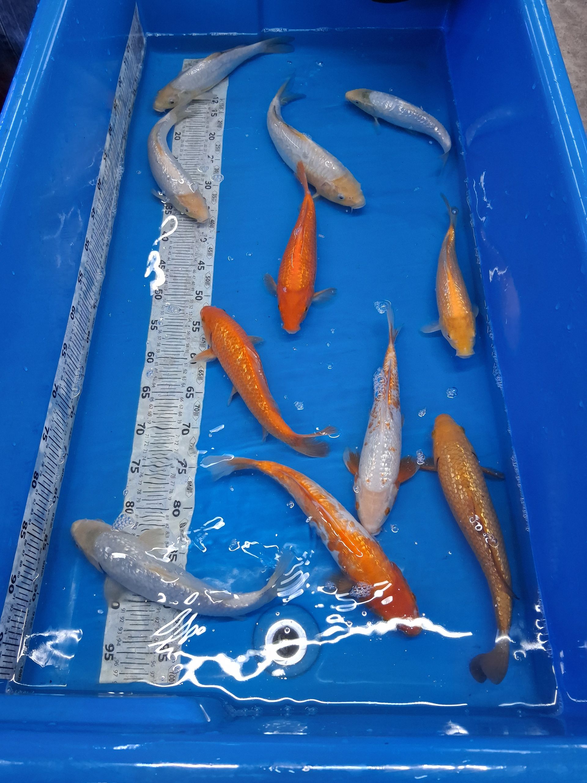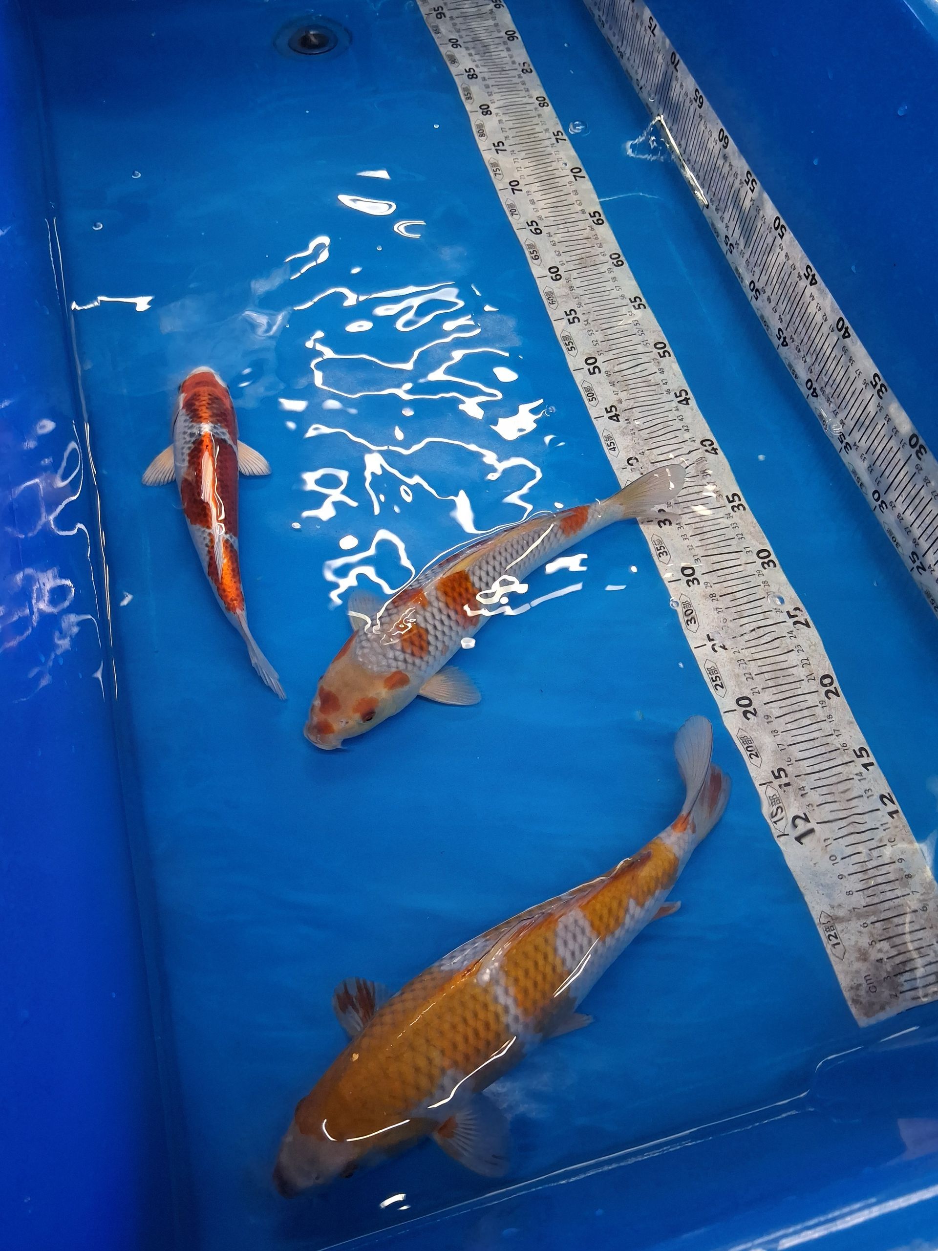 Die Tiere schwimmen in konstant temperiertem Wasser bei ca. 25,5 °C und werden mit hochwertigem Konishi No.1 Futter versorgt.