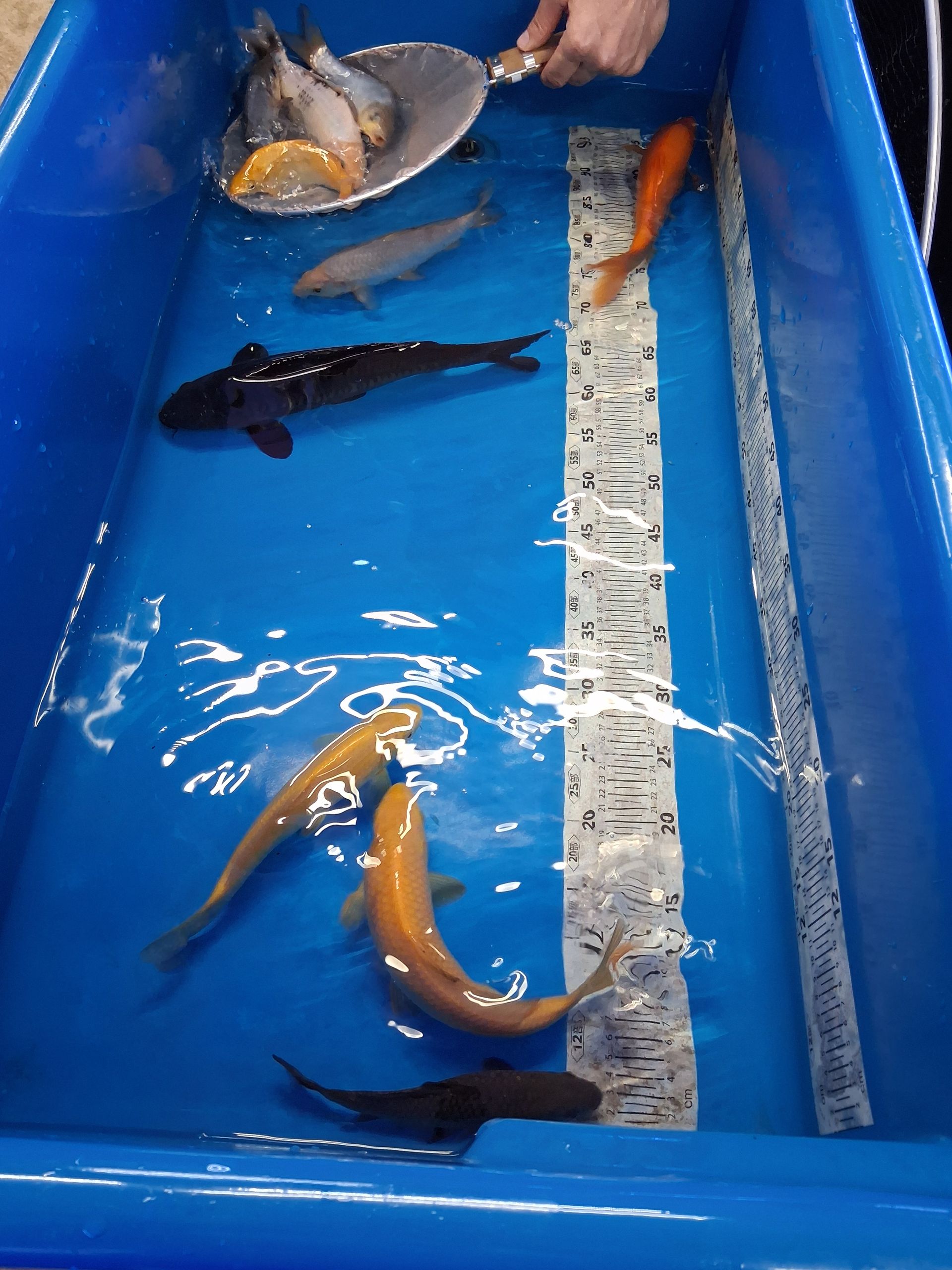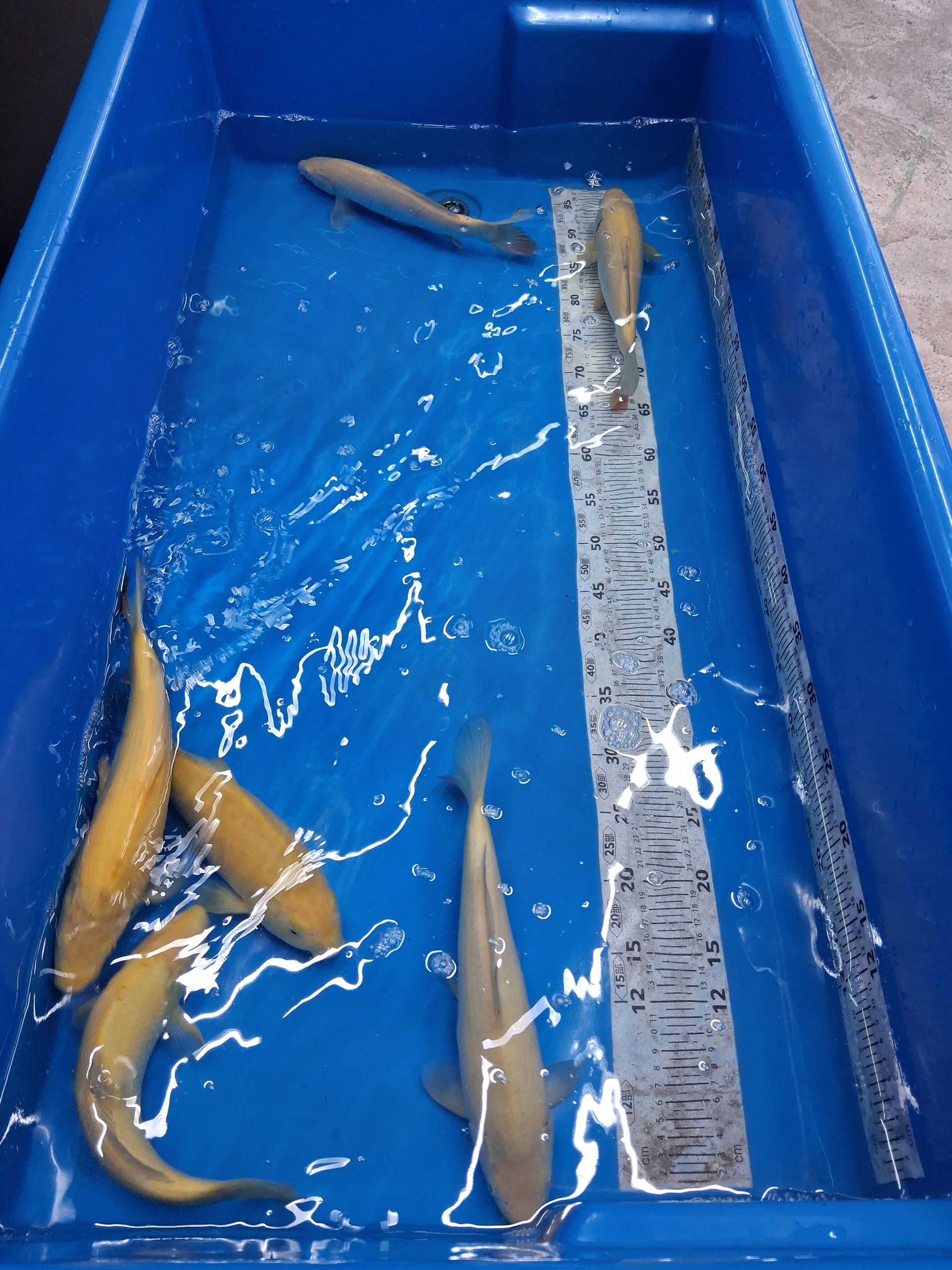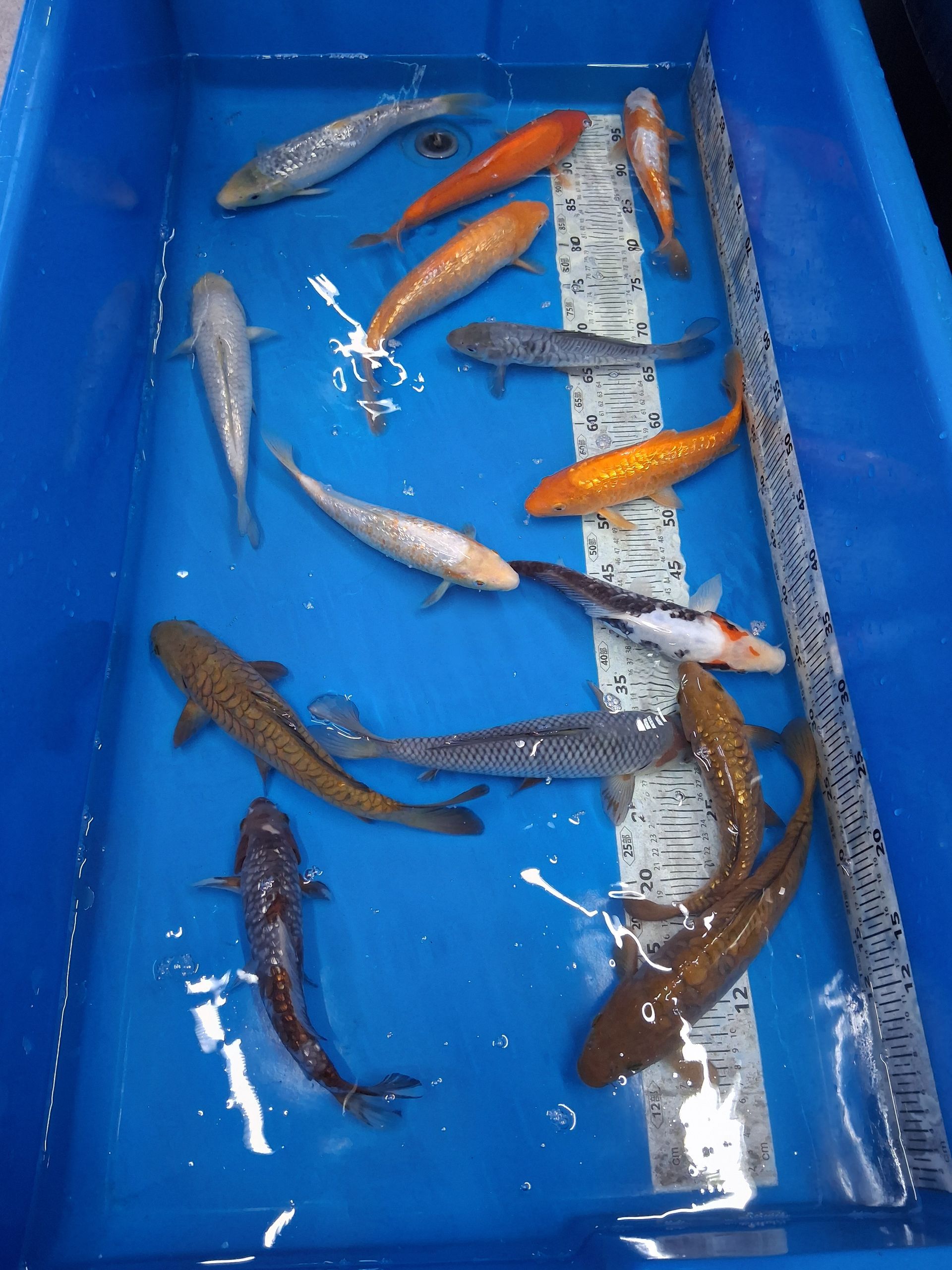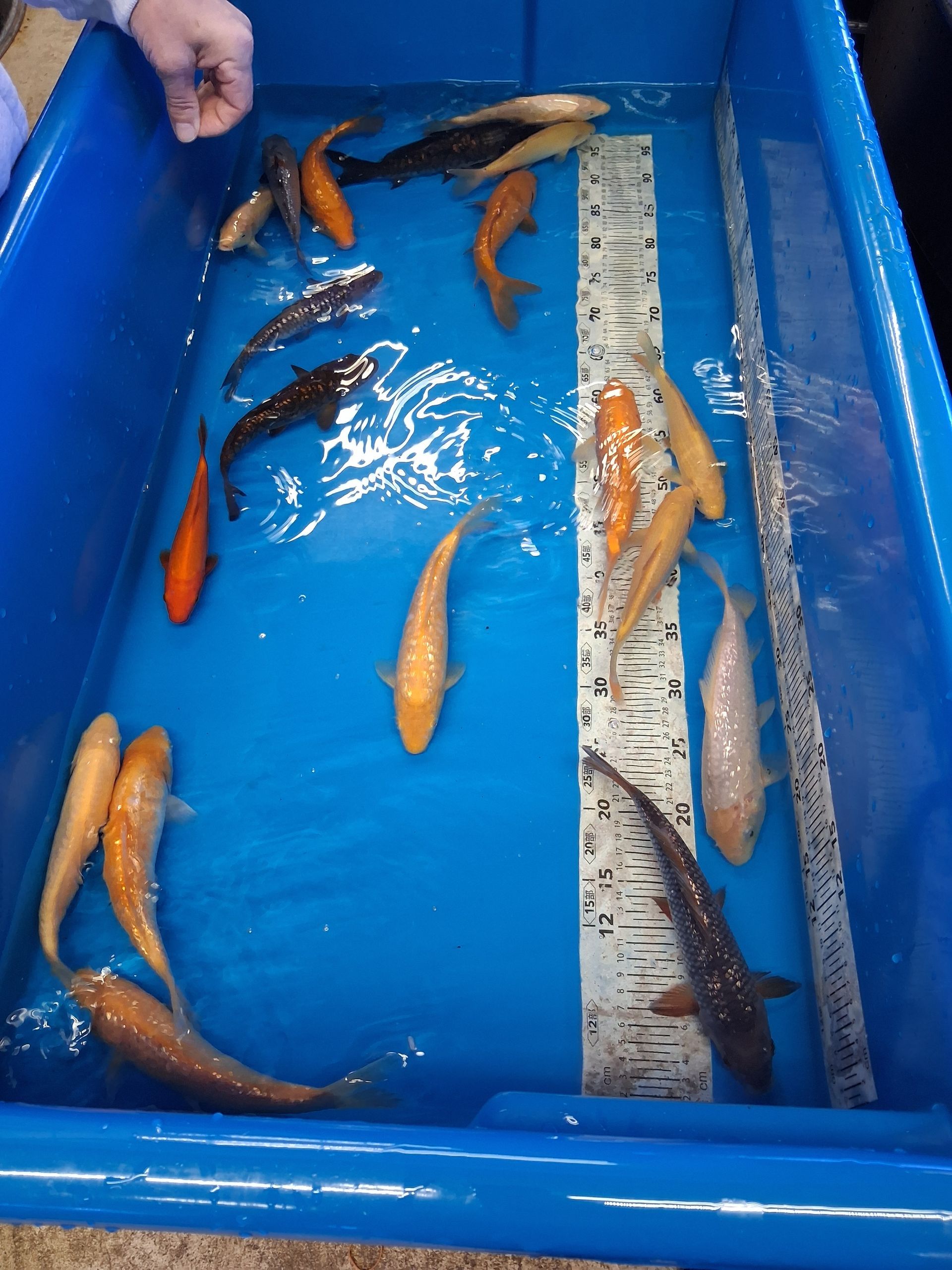 Die Tiere schwimmen in konstant temperiertem Wasser bei ca. 25,5 °C und werden mit hochwertigem Konishi No.1 Futter versorgt.